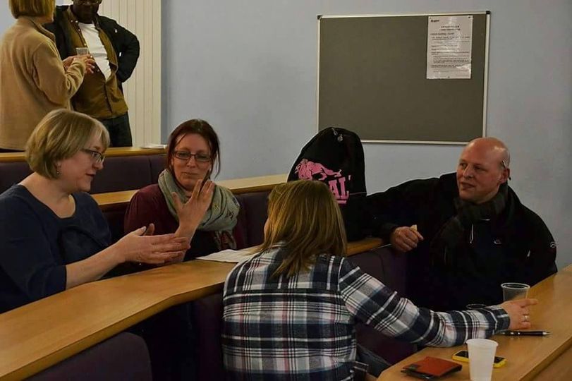 Ironically, as I was thinking about this just now a ‘memory’ popped up on Facebook, a photo of me with members of a writing group I once ran, chatting together at a writing event. They were my first ever writing group, run voluntarily at my local library, and my first experience of supporting others to tell the stories they want – often need – to tell.